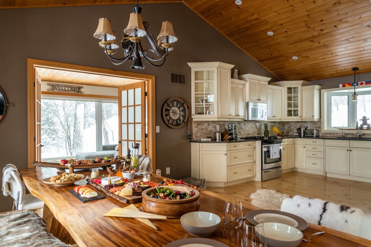 Una joya escondida en High Lake, esta casa de campo privada de dos dormitorios es donde Muskoka susurra sus secretos. A solo 2,5 horas al norte de Toronto, escondido entre Hunstville y Bracebridge. Construida en un encantador estilo mini-Viceroy, la cabaña te da la bienvenida con techos abovedados y espacios cálidos e iluminados por el sol. Una acogedora habitación Muskoka se extiende hacia un lado, invitándote a quedarte durante largas cenas o acurrucarte con un libro mientras la brisa del lago se desplaza.