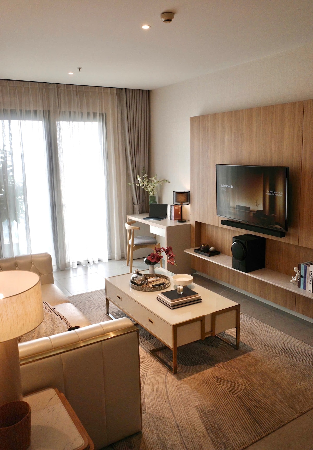The apartment is beautifully designed in Wabi Sabi style located in D1Mension Residences building, District 1 apartment center, artistic style, high-class resort amenities, special rooftop swimming pool _ spa pool _ sauna room, gym_ showroom, private office, garden fish pond, 4' pizza right in the lobby, garden BBQ area, children's play area, spacious waiting room, All bedroom windows and balconies are airy, unique, luxurious, classy apartment