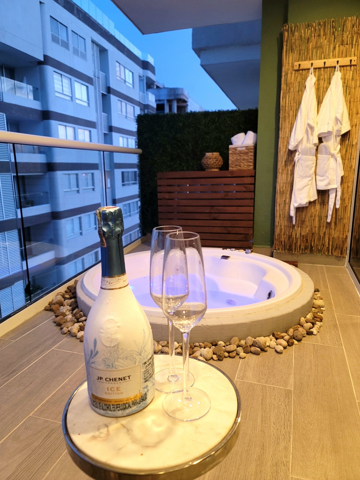 Jacuzzi privado con vista a la laguna, a pocos pasos de la playa