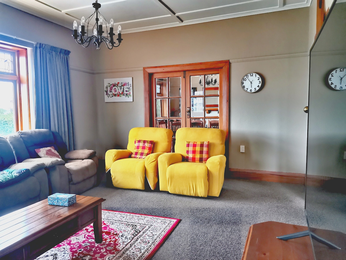 Esta espaciosa casa con carácter de 4 dormitorios con un toque moderno está convenientemente ubicada en el centro de Timaru. Estarás a un salto de toda la acción. - Caroline Bay, que tiene acceso a los hermosos senderos costeros para caminar/montar en bicicleta y al parque infantil CPlay y al minigolf. - El centro de Timaru, con bares, cafeterías y restaurantes con vistas a la bahía. - Colonia de pingüinos. - Supermercados y comida para llevar a poca distancia en coche. Esta casa de 2 pisos está muy bien amueblada con todo lo necesario. Perfecta para cualquier persona.