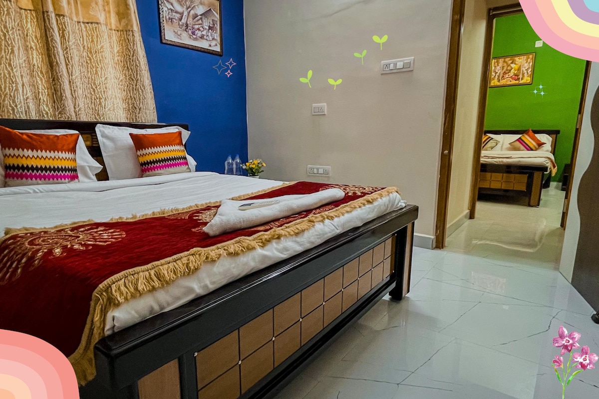Diviértete con toda la familia en este elegante lugar. Obtienes apartamentos 2BHK Two Side by Side con instalaciones premium ☑️Estacionamiento ☑️inteligente gratuito con cable Dormitorios con☑️ aire acondicionado ☑️ Amplia sala de estar utensilios de☑️ cocina Mesa de☑️ comedor Respaldo de☑️energía de agua☑️ caliente A 🤍2,5 km de la parada de autobuses y la estación de tren. A 🧡2 km del templo Tiruchanoor Padmavathi A 🩵6 km de Alipiri A 🩵3,5 km del templo Govindharaj Swami 🩵A 10 KM del aeropuerto, los huéspedes pueden utilizar el apartamento para varios propósitos, como el turismo, las fiestas de gatito, los placeres de fin de semana.