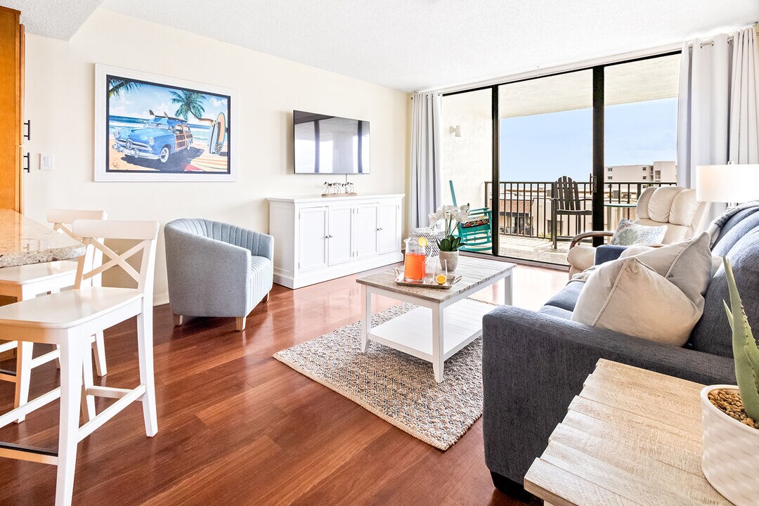 ¡A pocos pasos de la arena! Lujosa y espaciosa suite de 1 dormitorio y 1 baño. Impresionantes vistas al mar desde todos los ángulos, incluyendo la corredera de triple vidrio, el balcón y las ventanas de gran tamaño del dormitorio. Ve y siente los lanzamientos de cohetes desde el balcón privado. Perfecto para aventureros acuáticos o amigos íntimos. Decorado con buen gusto y recién reformado, espera una ubicación idílica para divertirte en el agua con lujo para un máximo de 4 huéspedes. Cerca de Disney/Aeropuerto de Orlando, Centro Espacial Kennedy, Puerto Cañaveral, Cocoa, Melbourne.