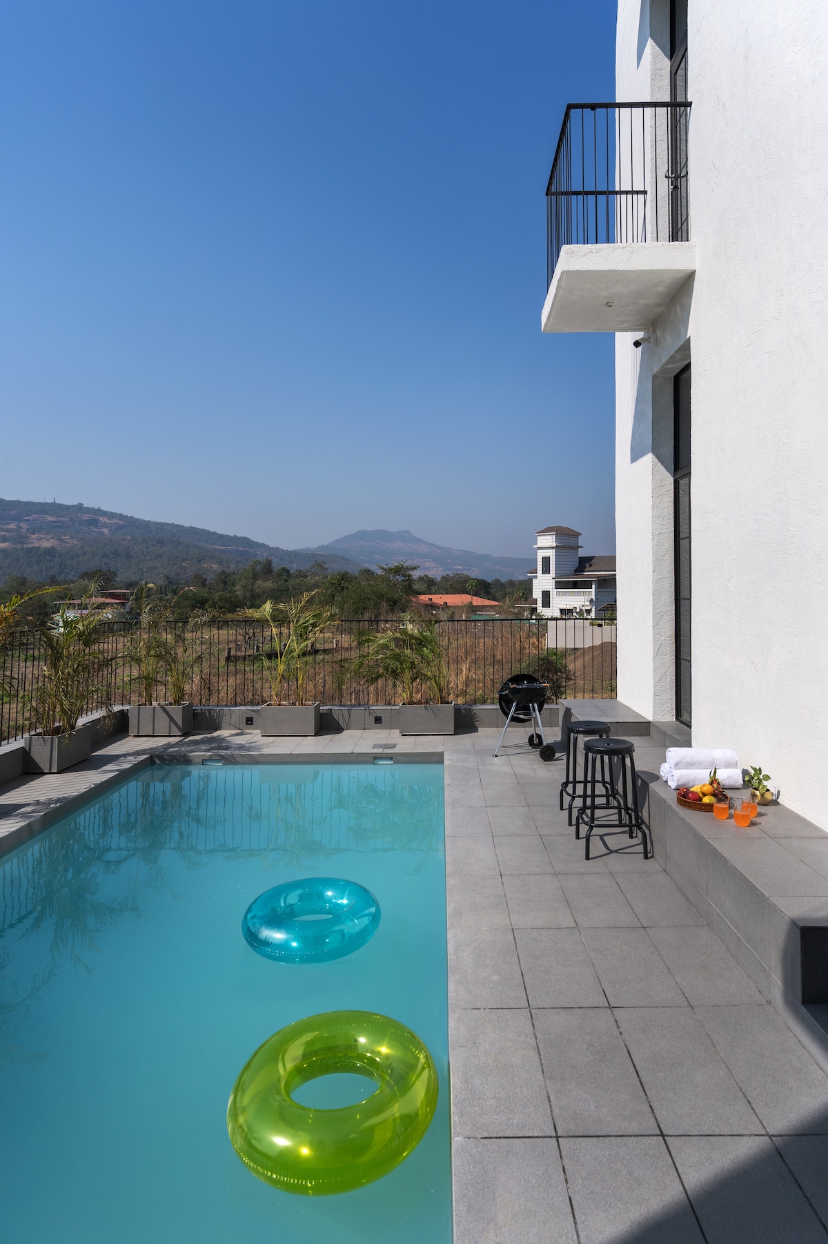 'Villa Elsewhere' es una lujosa y hermosa villa con piscina privada, a solo 60-90 minutos en coche de Bombay. Rodeado de exuberantes vistas verdes de campos, colinas y sonidos de la naturaleza. La villa tiene 3 dormitorios con aire acondicionado en suite, una gran sala de estar con aire acondicionado que se abre a una piscina privada y una gran terraza con un bar. La cocina está totalmente equipada donde un chef puede preparar comidas deliciosas (* cargo adicional). Se admiten mascotas (* tarifa adicional). ¡RESERVA para relajarte en un ambiente tranquilo, para una reunión o para organizar la mejor parte de la historia!