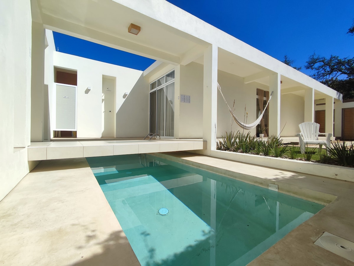 Joyas minimalistas llenas de luz que se abren a jardines de árboles imponentes y suculentas florecientes, múltiples terrazas y una piscina de entrenamiento climatizada de 22 metros. Somos parte de una ciudad zapoteca con restaurantes cercanos y fácil transporte a la ciudad de Oaxaca (a 25 minutos). Ofrecemos excursiones a pueblos artesanales y sitios arqueológicos. Para el excursionista, hay senderos de montaña locales. Y la ciudad de Tule está a 2,5 millas de distancia con su majestuoso ciprés de 2000 años de antigüedad, ¡una vista para ver!