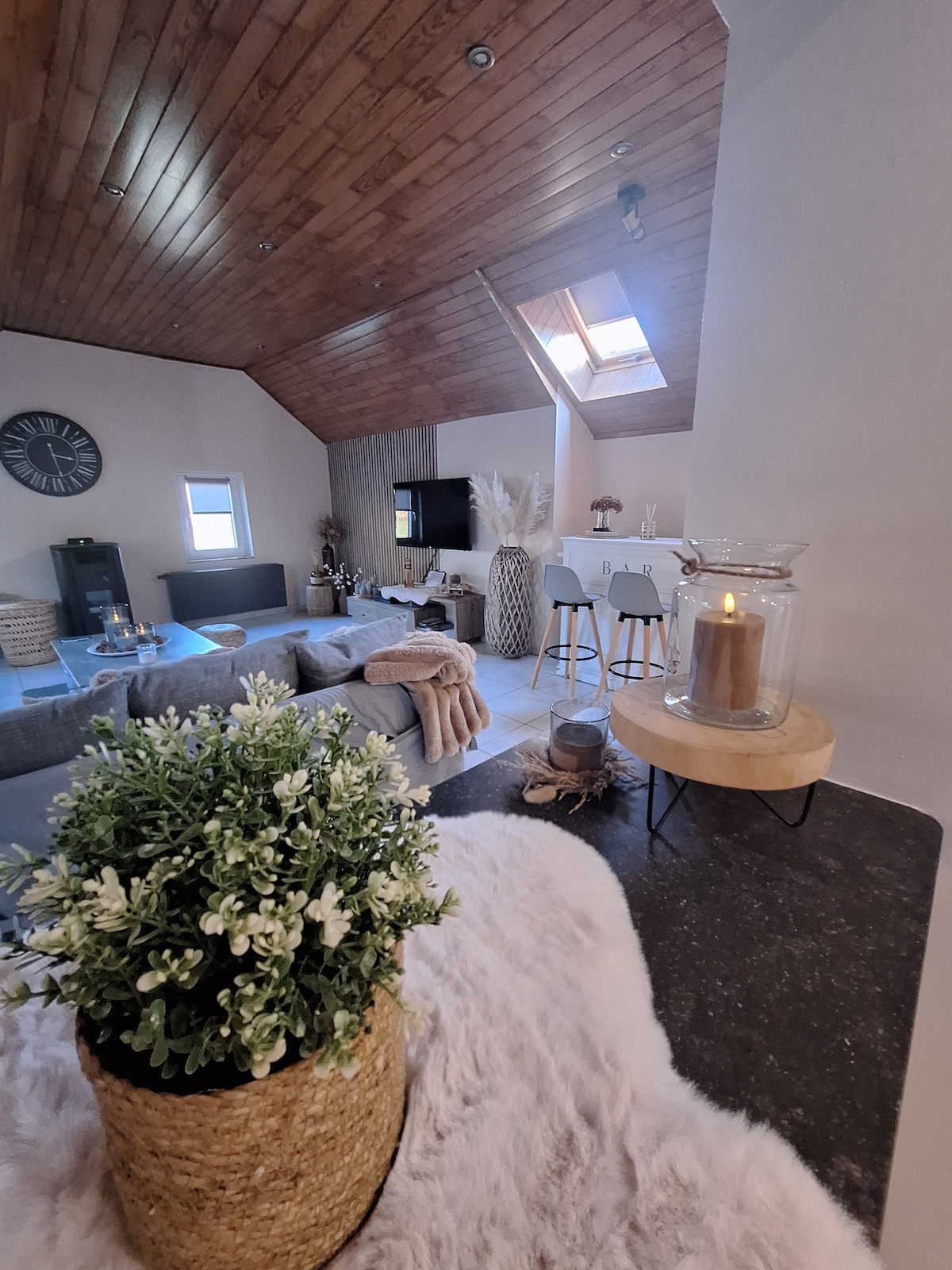 Bienvenue au Chalet Nord, un cocon paisible niché à Heusy (Verviers), entre nature et ville. Situé sur un vaste terrain de 4000 m² partagé avec le chalet Sud et notre maison, il offre calme, confort et intimité. Profitez d’un intérieur cosy, d’une terrasse privée et d’un environnement verdoyant. Balades, commerces, centre-ville : tout est à portée. Idéal pour un séjour reposant en couple, en famille ou entre amis !
