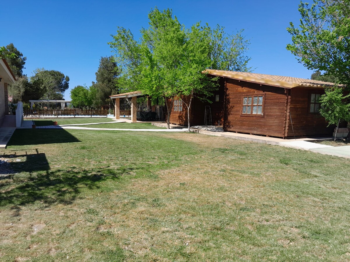 Chalet con 4 dormitorios 2 de ellos con cama matrimonial, las otras 2 habitaciones cuentan con 2 camas individuales , salón comedor con chimenea y aire acondicionado en el salón, cocina con todos los electrodomésticos y 2 baños completos. La parcela cuenta con una casa de madera (cabaña que se abrirá cuando la reserva tenga un mínimo de 7 huéspedes) con 2 dormitorios el primero con 1 cama matrimonial y 2 camas individuales el segundo dormitorio 3 camas individuales