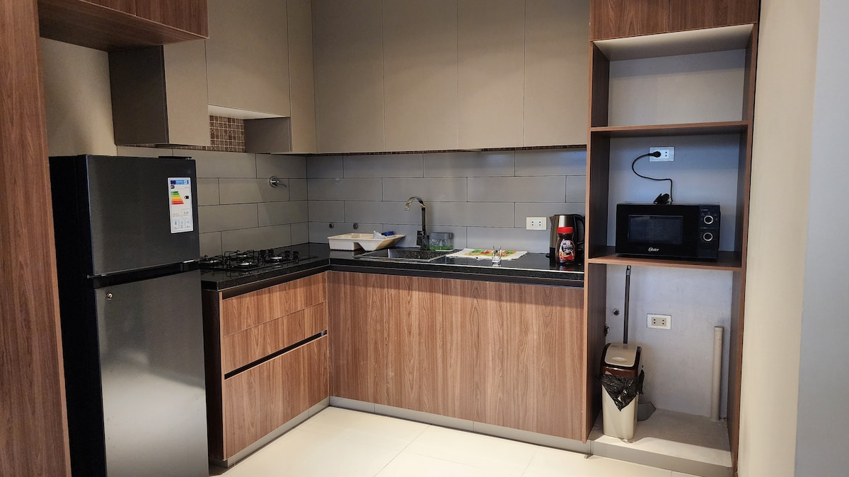 Hermoso depto en el centro de Tarija Cuenta con 1 habitación (cama Queen) y sofá cama de 2 plazas en el living. Ubicado a 1 cuadra de la plaza principal y cerca de todo: plazuela Sucre, mercado central, restaurantes, farmacias y transporte. En un condominio nuevo y moderno, con acceso sin restricciones mediante cerradura smart. 📢 Si eres de Bolivia, puedes usar tarjetas virtuales para reservar. No estamos con el tipo de cambio oficial.