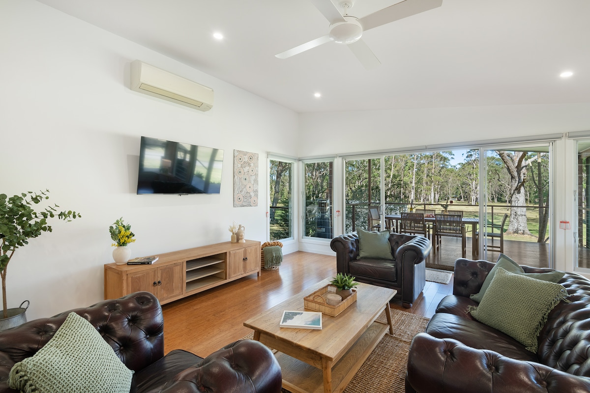 Cabaña con aire acondicionado en nuestra propiedad de 4 acres. A solo 2 km de la autopista Princes, en una ubicación tranquila, ideal para solteros o parejas que solo buscan escaparse unos días o unas semanas y disfrutar del desayuno en su terraza con vistas al pintoresco prado. Hay mucho aparcamiento fuera de la calle para tu barco o remolque. Disfruta de los alrededores tranquilos y silenciosos y luego explora los lugares de interés y las actividades de Huskisson, la bahía de Jervis y las muchas hermosas playas de arena blanca que están a poca distancia en coche.