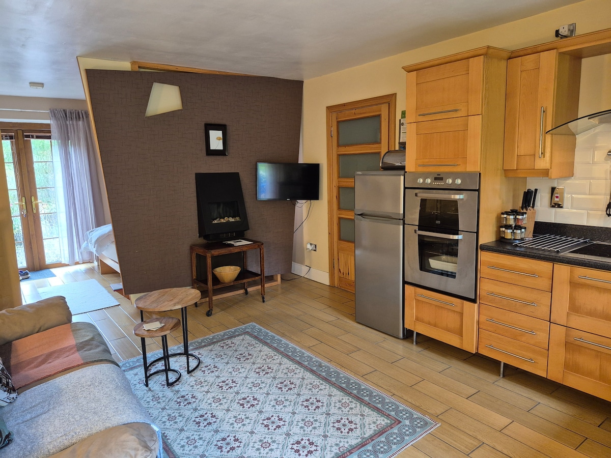 Beautiful garden annex, fully equipped with the luxury of a five star hotel but with the serenity of a retreat experience. This suite consists of three interconnecting bedrooms, kitchenette and bathroom situated in a scenic countryside setting. Large garden with lots of outdoor seating and plenty of space for kids to play football, jump on the trampoline etc. No matter what season you visit Spruce lodge it has something great to offer, be it the garden in full bloom during Summer, the gorgeous Autumnal colours of Autumn, the warm romantic Winter evenings by the open fire or the awakening of nature in Spring with the dawn chorus, you won't be disappointed.