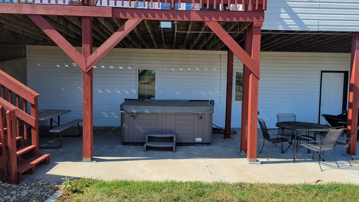 Enjoy our piece of country paradise! 1 BR lodge sleeps 4 comfortably w/fully equipped kitchen, W/D, fire pit & grill. Relax at our peaceful lodge after hunting at nearby Ravenwood Lodge or escape with the family. Spacious walk-in shower. Breakfast items & great coffee options provided! You may see pheasant, quail & deer on the property. Near Echo Cliff park & on the edge of the Flint Hills. No pet fees!! Low cleaning fees & no occupancy tax! Early check in/ late check out may be available.