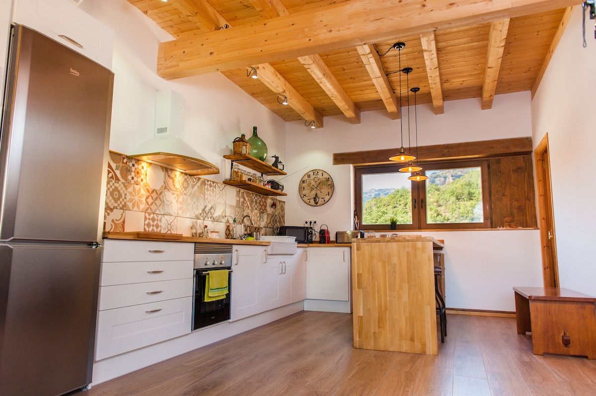 Cal Bona Vista, appartement met twee verdiepingen en een lichte, open woonkamer. Het zonnige terras biedt overdag een adembenemend uitzicht op de bergen, en ’s avonds een sterrenhemel met grote kans op vallende sterren voor een wens moment. Schitterend meer, wandeltochten, MTB routes en plekjes om te ontspannen. Op 20 meter vind je het dorpszwembad, waar je in de zomer heerlijk kunt afkoelen. Een plek waar natuur, avontuur en rust samenkomen – perfect voor een onvergetelijk verblijf.