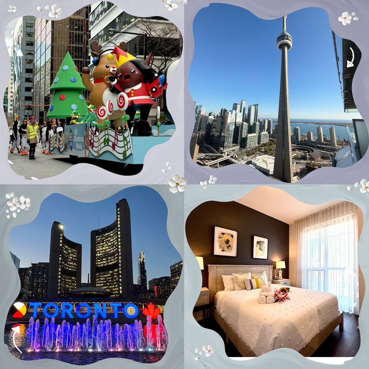 ¡Hermoso apartamento con una vista maravillosa! Tendrás una observación sin obstáculos de la Torre CN de Toronto, el club náutico en el puerto, el aeropuerto de la ciudad de Toronto y el lago Ontario. Gimnasio totalmente equipado, piscina y terraza en la azotea. Estarás a pocos minutos de la mayoría de las atracciones de la ciudad, así como del Lugar de Exposición. ¡Reserva ahora para una estancia inolvidable! Asegúrate de consultar mi GuideBook para obtener la mejor selección de restaurantes y descuentos de negocios locales para mis huéspedes. Envía tu consulta para obtener información.