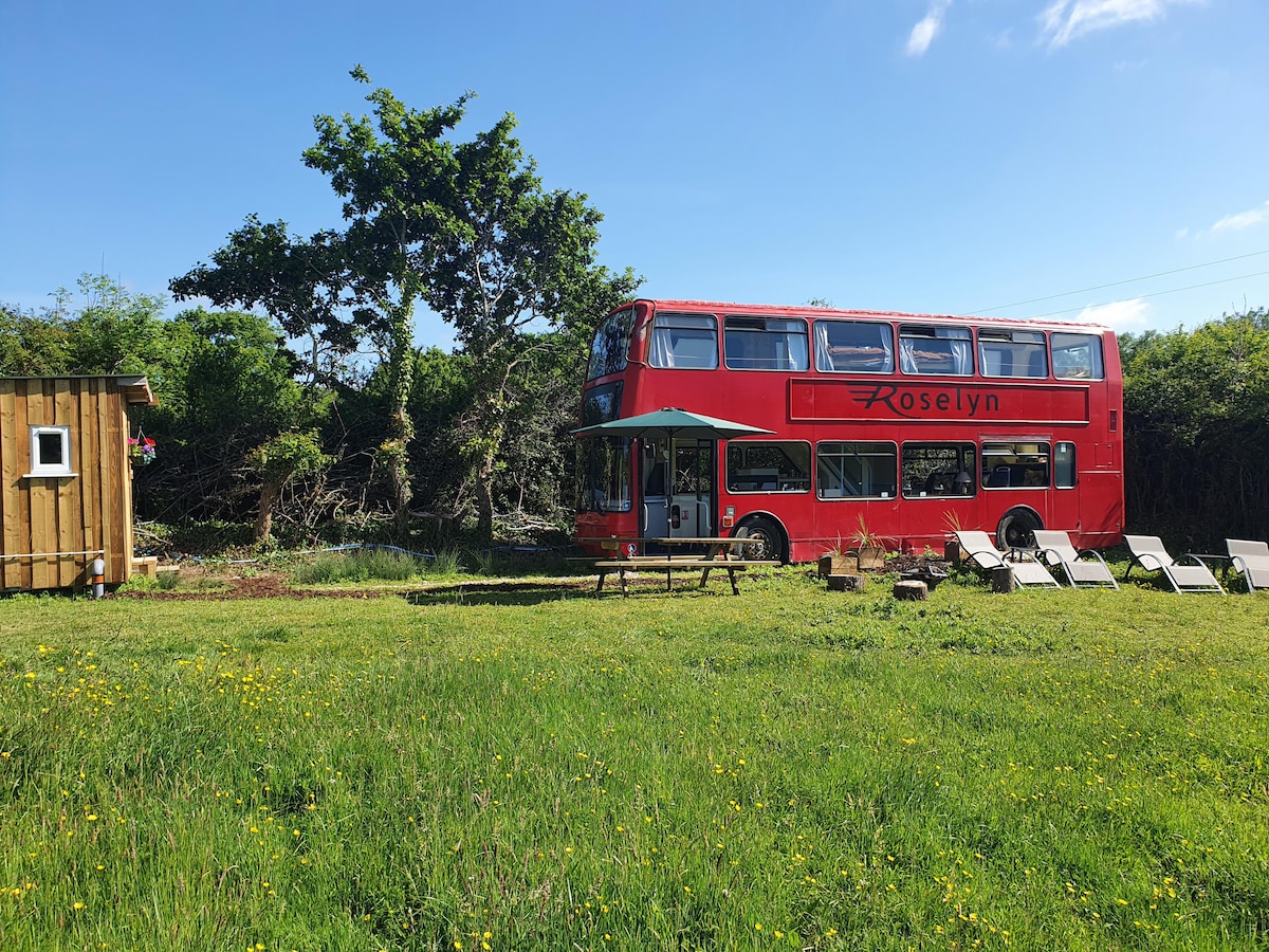 Familiar-Double Decker Bus-Cabaña-Vista al campo-B
