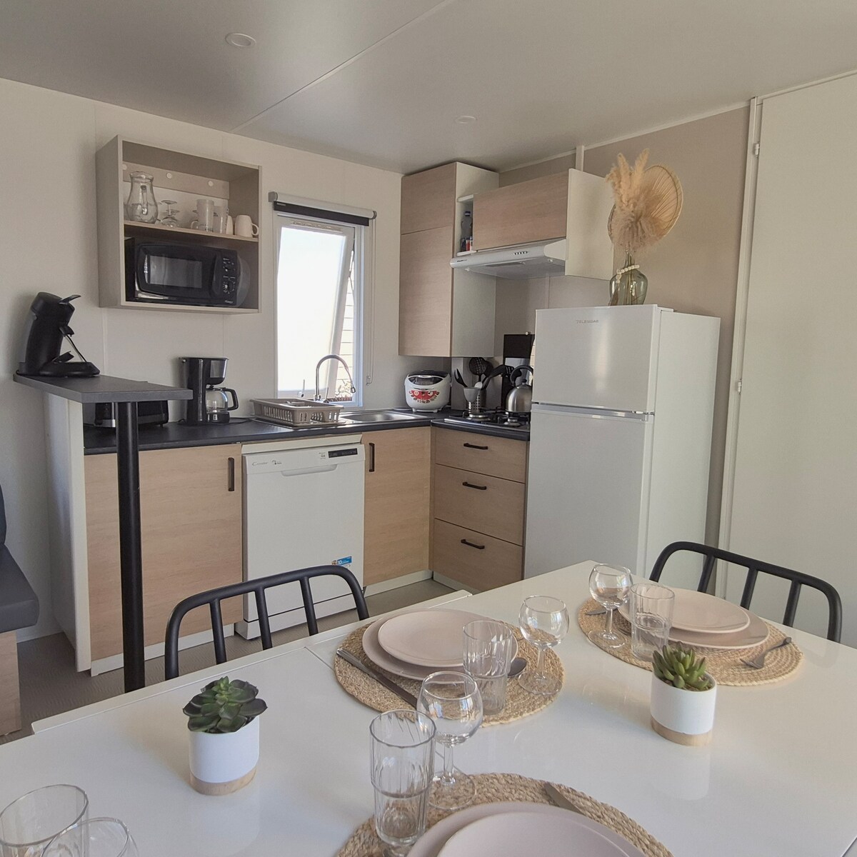 Encantadora villa de 60 m² en Torreilles, a 5 minutos del pueblo de Navidad de Barcarés. 2 dormitorios con camas de 160x200, sábanas y toallas incluidas. Cocina equipada (lavavajillas, horno, microondas), lavadora y secadora. Gran jardín con barbacoa y mesa grande. De 2 a 3 lugares de estacionamiento. A 3 min: Frenzy Palace (water jump), karting, arborismo. Restaurantes, bares y clubes de playa a 5 minutos. Ideal para 4 personas.
