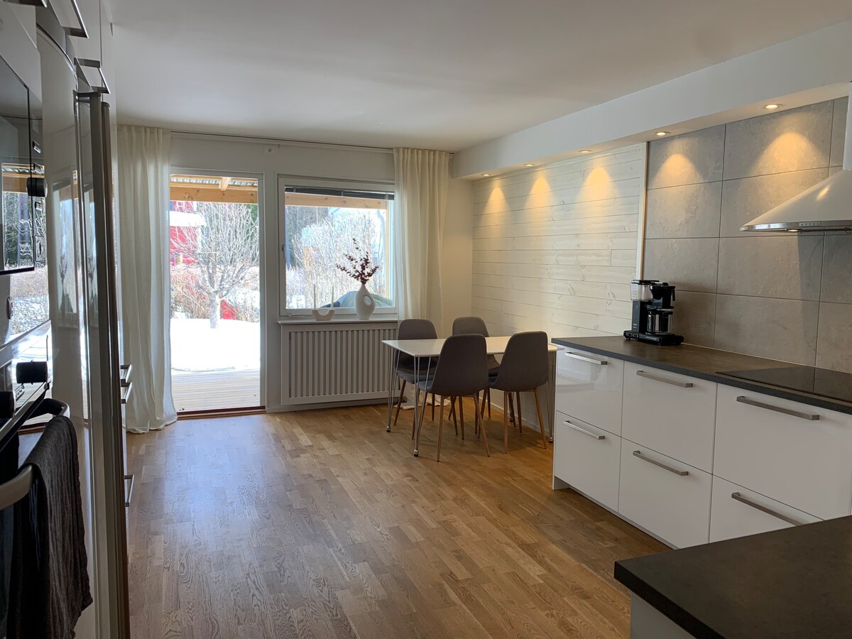 Apartamento recientemente renovado y decorado con buen gusto en una casa de principios de siglo. Aquí tienes cerca la ciudad, hermosos senderos naturales, pista de patinaje, pistas de esquí en el lago. A 10 minutos en coche del aeropuerto y a 2,5 km del centro en coche, bicicleta o bonitos senderos. Se añadirá un coste por la carga de coches eléctricos (tipo 2 contacto 16A), toallas y ropa de cama. El inquilino debe limpiar el alojamiento antes de la salida. Hay equipos de limpieza disponibles. La familia anfitriona vive en el piso de arriba, pero tiene una entrada independiente. Bienvenidos.