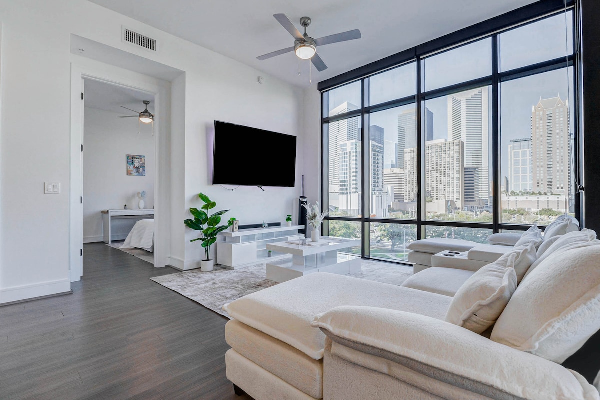 Luxe Downtown Hideaway 🌆✨ Stay in style just 10 mins from Toyota Center & Minute Maid Park. Our space offers a luxurious king bed, comfy pull-out couch, and a stocked mini-bar. Ideal for long-term stays with fast Wi-Fi, and in-unit washer/dryer. Hosted by a Superhost with 5-star reviews, enhanced cleaning, and seamless self-check-in. Perfect for business travelers, couples, or event-goers. Your perfect downtown retreat awaits!