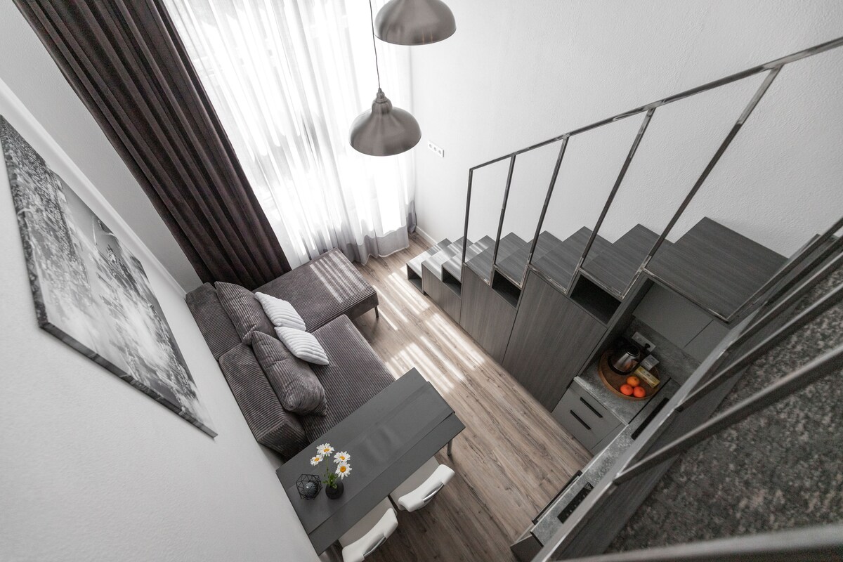 Disfruta de este estudio único y elegante a solo unos pasos del corazón del casco antiguo de Vilna. Rodeado de encantadores cafés, acogedores bares, un mercado de comida interior y un parque con excelentes vistas de Vilna, este estudio de 38 metros cuadrados incluye una cocina totalmente equipada, wifi de muy alta velocidad (500 MB/s), un televisor con Netflix y una cómoda cama doble. Ubicado en un edificio patrimonial de 120 años, a solo cuatro paradas de autobús del aeropuerto de Vilna y a 10 minutos a pie de la estación de tren/autobús.