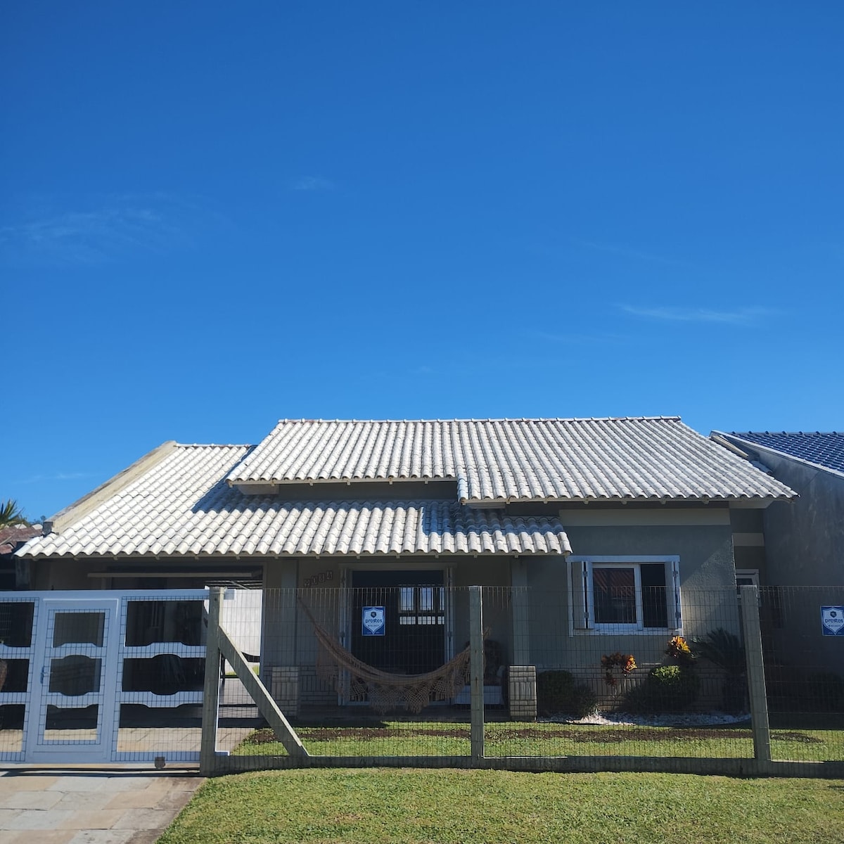 De nada :) ¡Olvídate de tus preocupaciones en este lugar espacioso y tranquilo! Hermosa casa adosada con 2 suites, sala de estar , cocina, dos baños y lavada debajo. Patio cerrado con espacio para dos autos, patio trasero y una bonita barbacoa. La casa está ubicada en el centro de la playa de Tramandaí, a 10 cuadras del mar. Tiene dos dormitorios, ambos con una cama doble y una cama individual adicional en cada dormitorio. Ambas habitaciones tienen ventiladores. En la cocina, microondas y utensilios para mayor facilidad ;)