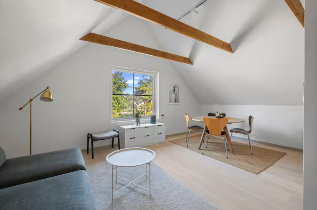 Acogedora y espaciosa casa de carruaje de planta abierta recientemente convertida con calefacción por suelo radiante en invierno. Cómodo sofá cama doble, escritorio y cocina bien equipada con lavavajillas. Baño con ducha y lavadora. Nivel de entresuelo solo para almacenamiento. Acceso a una hermosa pérgola con zona de barbacoa compartida con la casa principal. Situado en el campo, a 15 minutos en coche de Ystad . Disfruta de la costa báltica, las galerías de arte de Österlen, los campos de golf y las bulliciosas ciudades de Malmö y Copenhague.