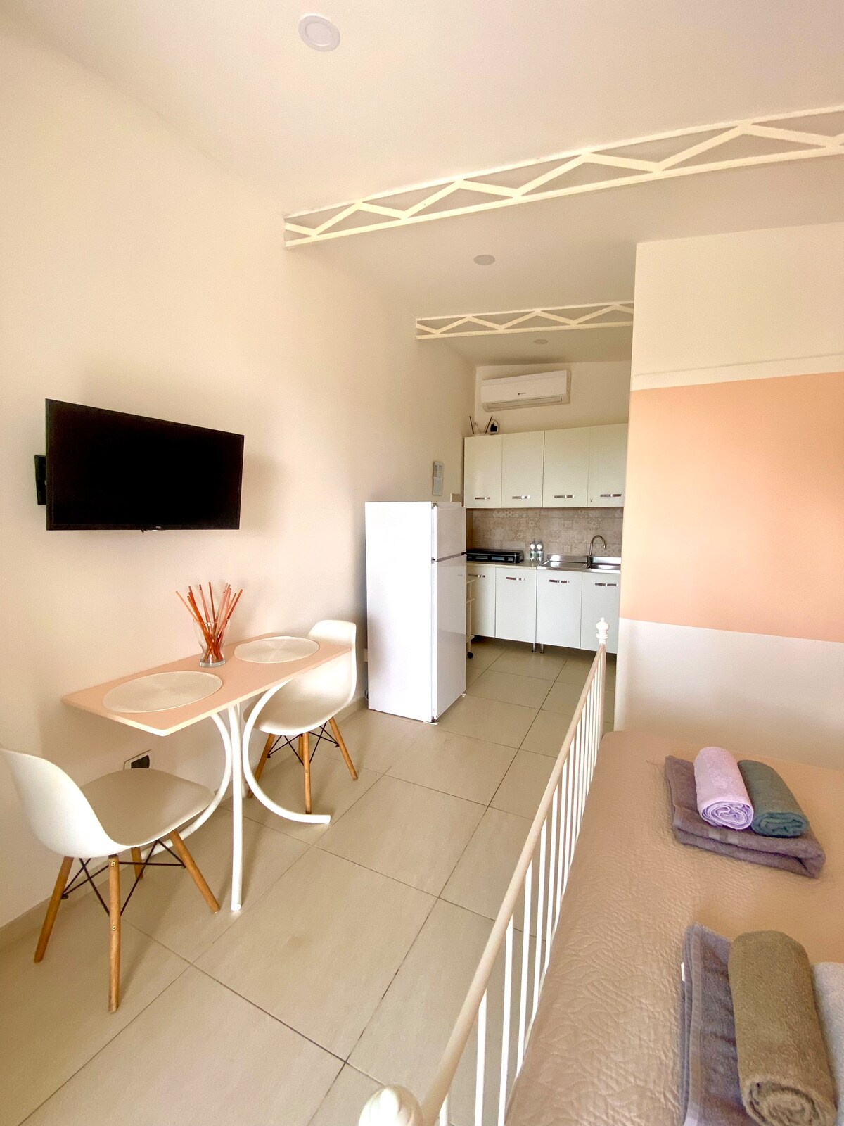 Apartamentos tipo estudio para 4-3-2 camas 1 cama matrimonial 1 sofá cama (presente en algunos lugares) zona de cocina equipada, 1 baño privado, un balcón. Las habitaciones están equipadas con aire acondicionado, sonido de pelo, cuna para bebés (bajo petición por una tarifa adicional) espacio de estacionamiento (si está disponible al momento de reservar), el edificio se encuentra en el centro del pueblo de Scauri, en una calle privada muy tranquila. Distante del mar a 300 m y 500 de la estación de tren cerca de restaurantes y tiendas de varios tipos.