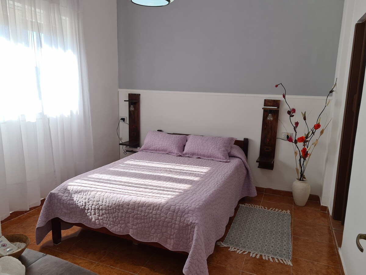 Luminoso monoambiente donde el cálido atardecer escapa por la ventana. PROMOCION NAVIDAD Y FIN DE AÑO RESERVA 5 DIAS Descansa en este tranquilo y hermoso departamento. Sábanas y toallas calidad hotelera, amenities. Equipado con electrodomésticos, aire acondicionado, TV con cable y wifi, secador de pelo. A una cuadra del área de servicios con restaurantes, cafeterías, panadería p/ celiacos y veganos y transporte público.
