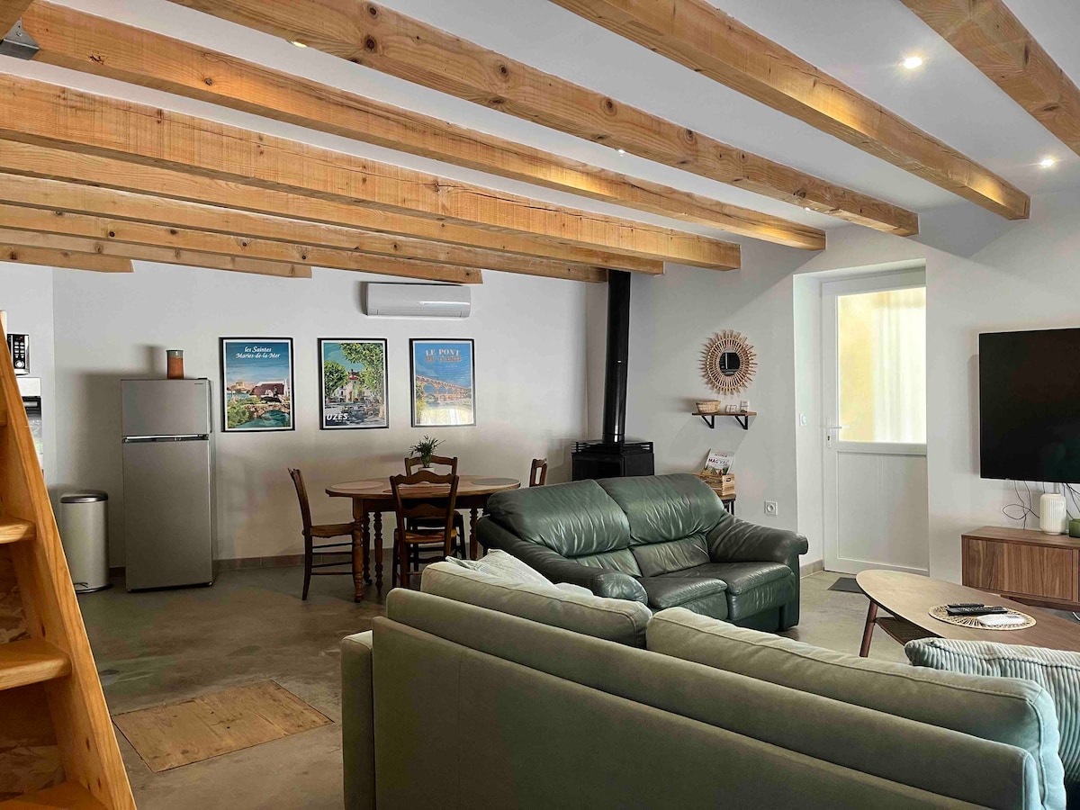 Este alojamiento de 26 m2 combina comodidad y tranquilidad. Está idealmente situado para una escapada en pareja o una parada en el sur de Francia, cerca del puente del Gard, Uzès y las orillas del Ródano. Con todas las comodidades, está equipado con: portal eléctrico Cocina americana equipada Ropa de cama cómoda Baño moderno Acceso a la piscina compartida Acceso privado al SPA Dos terrazas, una de ellas cubierta ¡Cerca de todas las comodidades, perfecto para los amantes de la naturaleza, el patrimonio y el vino!