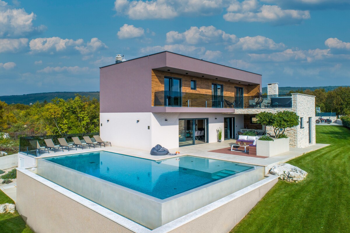 La única y lujosa Villa TonKa ocupa un lugar en la colina en el tranquilo entorno rural a las afueras del centro de la ciudad de Labin. Esta villa de nueva construcción ofrece dos plantas dedicadas a la opulencia y la relajación a través del diseño moderno perfectamente fusionado en su entorno natural. Equipado con gran piscina, sauna de infrarrojos y gimnasio privado, es un placer absoluto para unas vacaciones de ensueño.