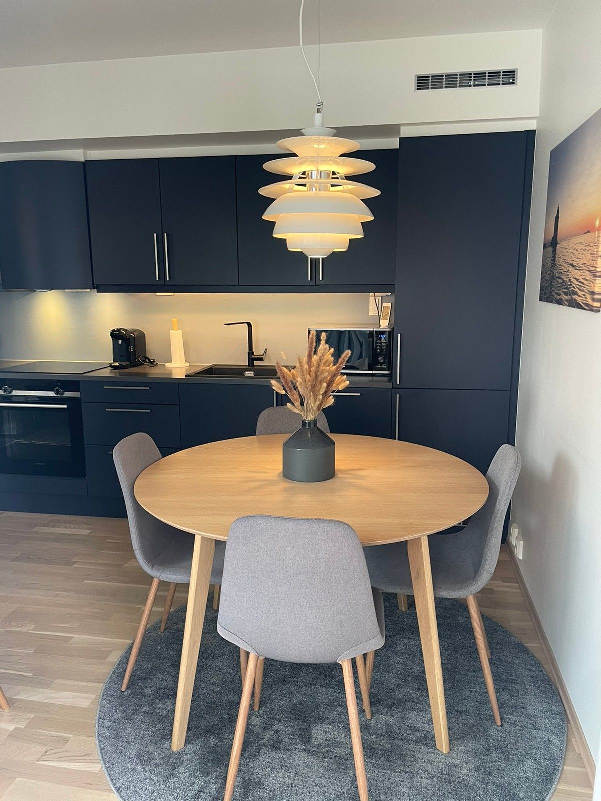 Disfruta de un apartamento luminoso y moderno con un interior elegante de alto nivel y un ambiente espacioso. El departamento tiene dos acogedoras habitaciones, un delicado baño y una gran sala de estar amueblada con muebles de calidad. También tienes una terraza privada de 40 metros cuadrados. Con espacio de garaje, ascensor y ubicación en el atractivo Solsiden, vives a poca distancia de restaurantes, tiendas, el centro de la ciudad y el fiordo. Una estancia cómoda y elegante en el corazón de Trondheim.