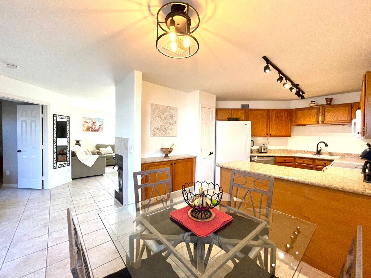 Amplia casita cerca de Ventana Canyon que cuenta con dos dormitorios, planta baja sin unidad encima, encimeras de granito, wifi, Directv con paquete Premier (el dormitorio principal y la sala de estar tienen cable), un patio privado con parrilla y una plaza de aparcamiento cubierta. Para estancias largas (más de un mes), ¡envíame un mensaje y podemos negociar las tarifas! La unidad está equipada con: - Sistema de ósmosis inversa - Televisor inteligente 4K - Cafetera - Horno tostador - Licuadora - Cocina totalmente equipada con utensilios de cocina.