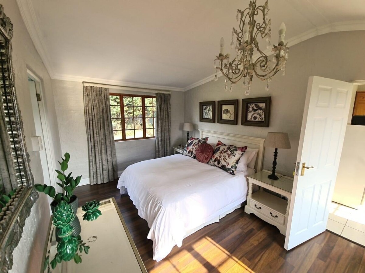 This 2-bedroom cottage includes a king bed (can split into twin beds) and a double bed with 2 shower-only bathrooms. It has braai facilities and a full kitchen, air-fryer, and a microwave. Also includes a living area with a fireplace.