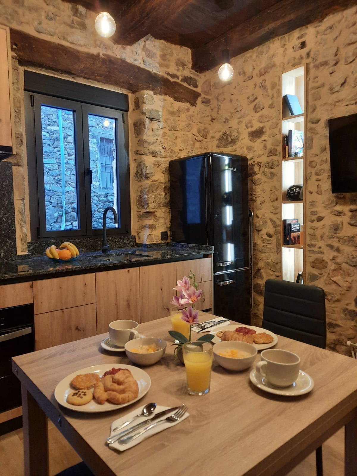 Nuestro LOFT de MONTAÑA está especialmente diseñado para parejas o parejas con niños. Destaca por sus grandes y confortables espacios, todos ellos con fantásticas vistas a las montañas. -Salón chimenea con vistas panorámicas. -Cocina muy bien equipada. -Cama abatible de matrimonio y sofá cama. -Baño completo en piedra Natural. -Porche panorámico climatizado. -Cocina de Verano con Barbacoa y Horno de Leña. -Piscina de piedra natural con una zona de Solárium. -Fuentes, Jardines y amplias terrazas.