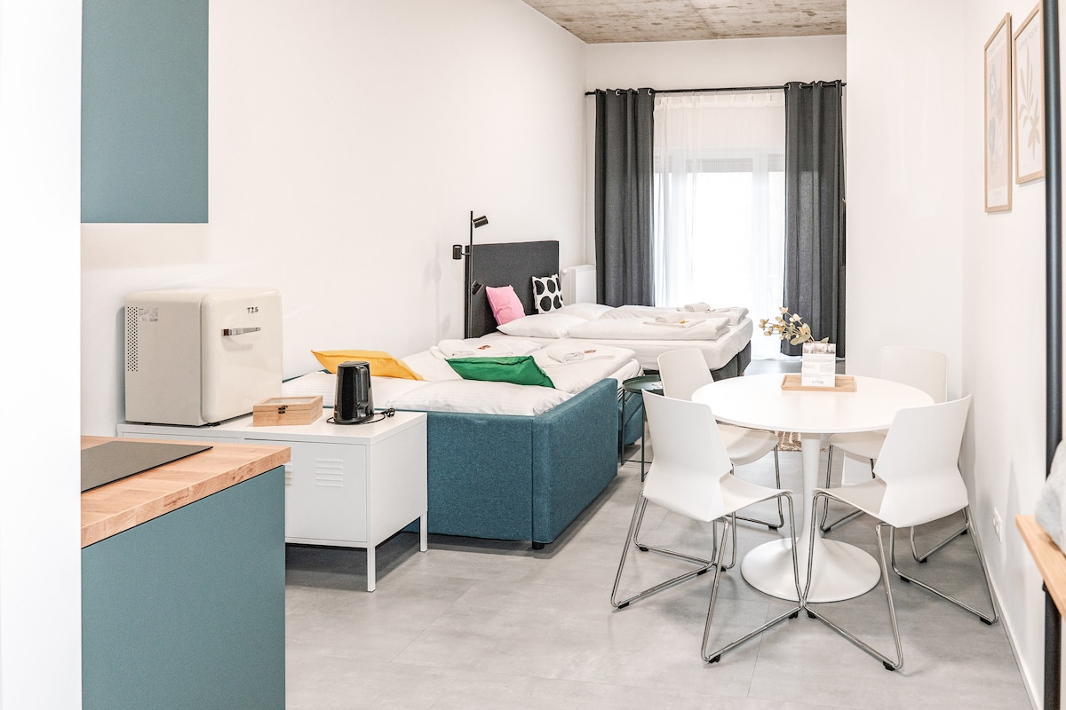 Alójese en el elegante y tranquilo apartamento tipo estudio en el corazón de Gersthofen. El apartamento ofrece una ubicación atractiva con buenas conexiones con la autopista A8 a Múnich, Ulm y Stuttgart. Las tiendas están a poca distancia a pie. El parque acuático «Titania» con su gran zona de sauna está a pocos minutos, al igual que el centro de Augsburgo. También se puede llegar fácilmente a LEGOLAND en 25 minutos.