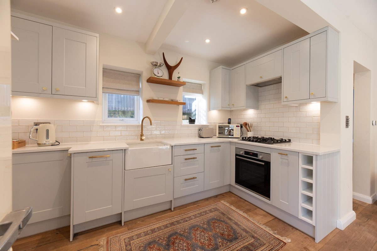 Nuestro espacioso anexo de 2 dormitorios recién renovado está situado en una amplia calle arbolada, una ubicación privilegiada a solo unos minutos a pie de las encantadoras cafeterías, tiendas y restaurantes de Hampton Court Village, Hampton Court Palace y la estación de tren local. Junto a nuestra elegante casa familiar victoriana, pero separado de ella, este espacio luminoso y elegante es tranquilo y autónomo y goza de los beneficios adicionales de un patio privado con jardín orientado al sur y un espacio de estacionamiento dedicado fuera de la calle.