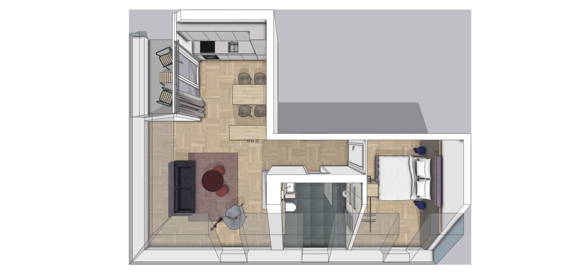 La modernidad se une a la tradición es el lema de este apartamento. ¡La mezcla de estilos de diferentes épocas es lo que hace que este estudio tenga un encanto especial! ¡Ideal para parejas! Hay 26 m² de espacio habitable disponible. El estudio está ubicado en un antiguo pabellón de caza en el Tiroler Zugspitzarena. Desde el palacio se tiene una vista increíble del macizo del Zugspitze.