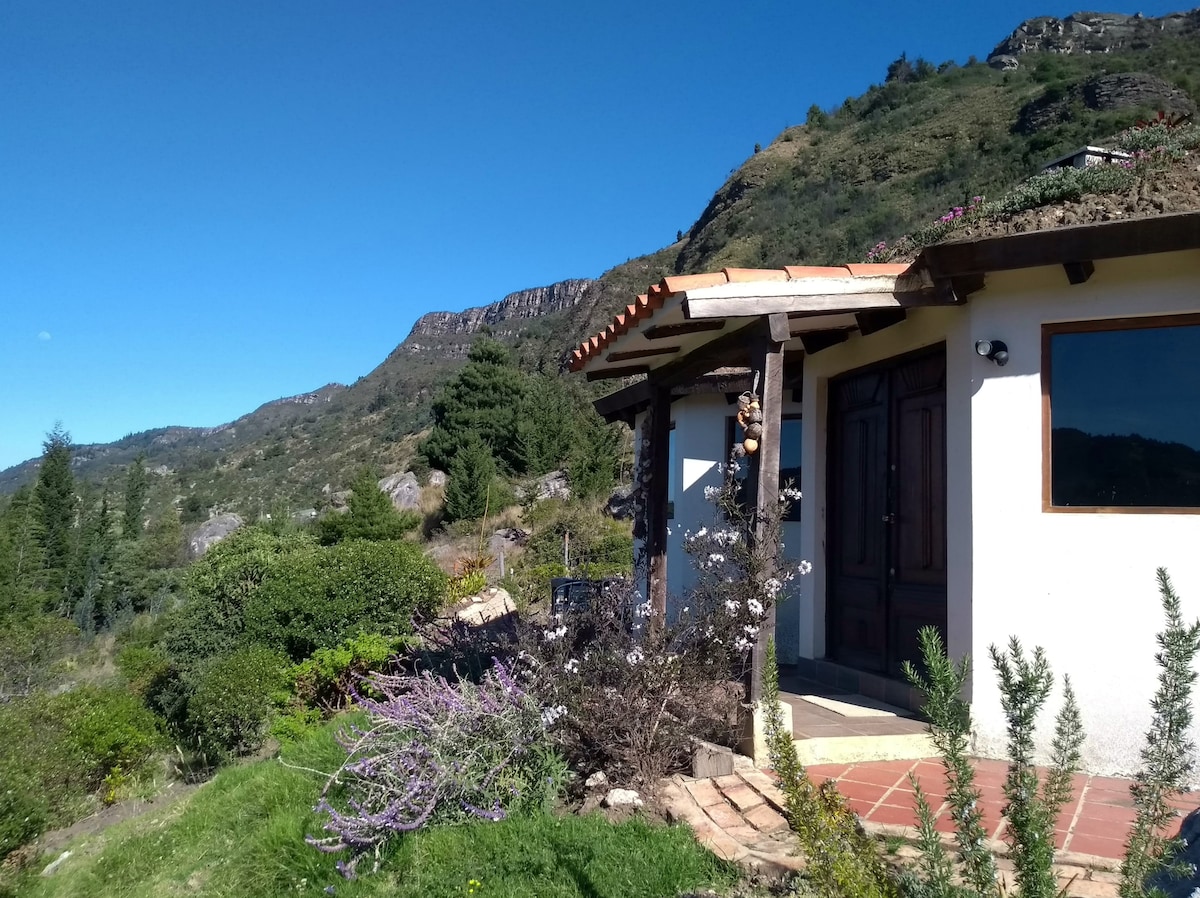 Espectacular casa en la Reserva EL Turpial frente a las Rocas de Suesca. Vista inmejorable por las amplias ventanas que tiene, estás dentro de la casa y sientes que estás en la naturaleza. Privacidad y jardín.Muy cómoda para familias, 3 habitaciones y 2 baños. Varias opciones de deportes outdoors.