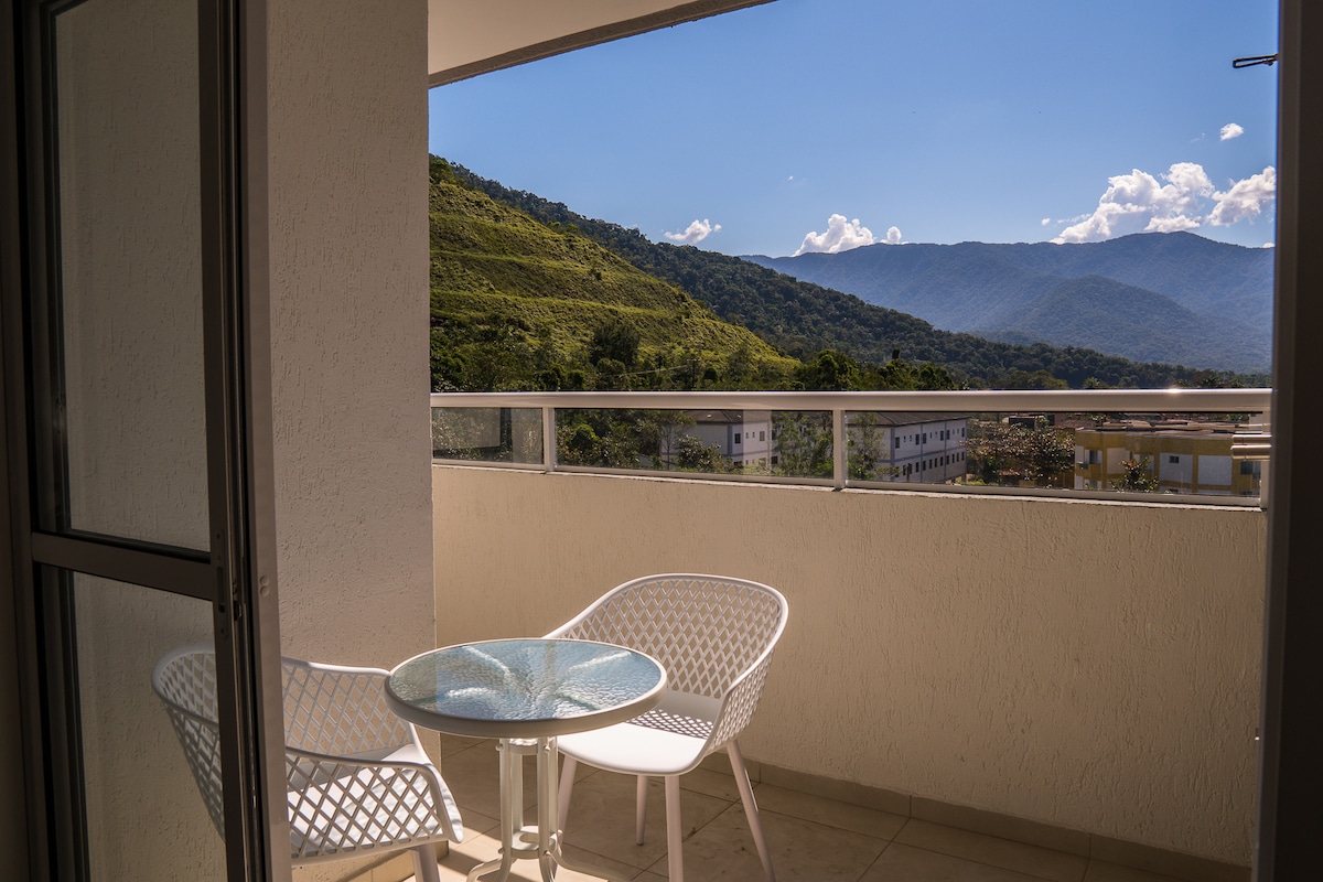 Apt vista p/montanhas - 5min da praia Ar Cond WiFi