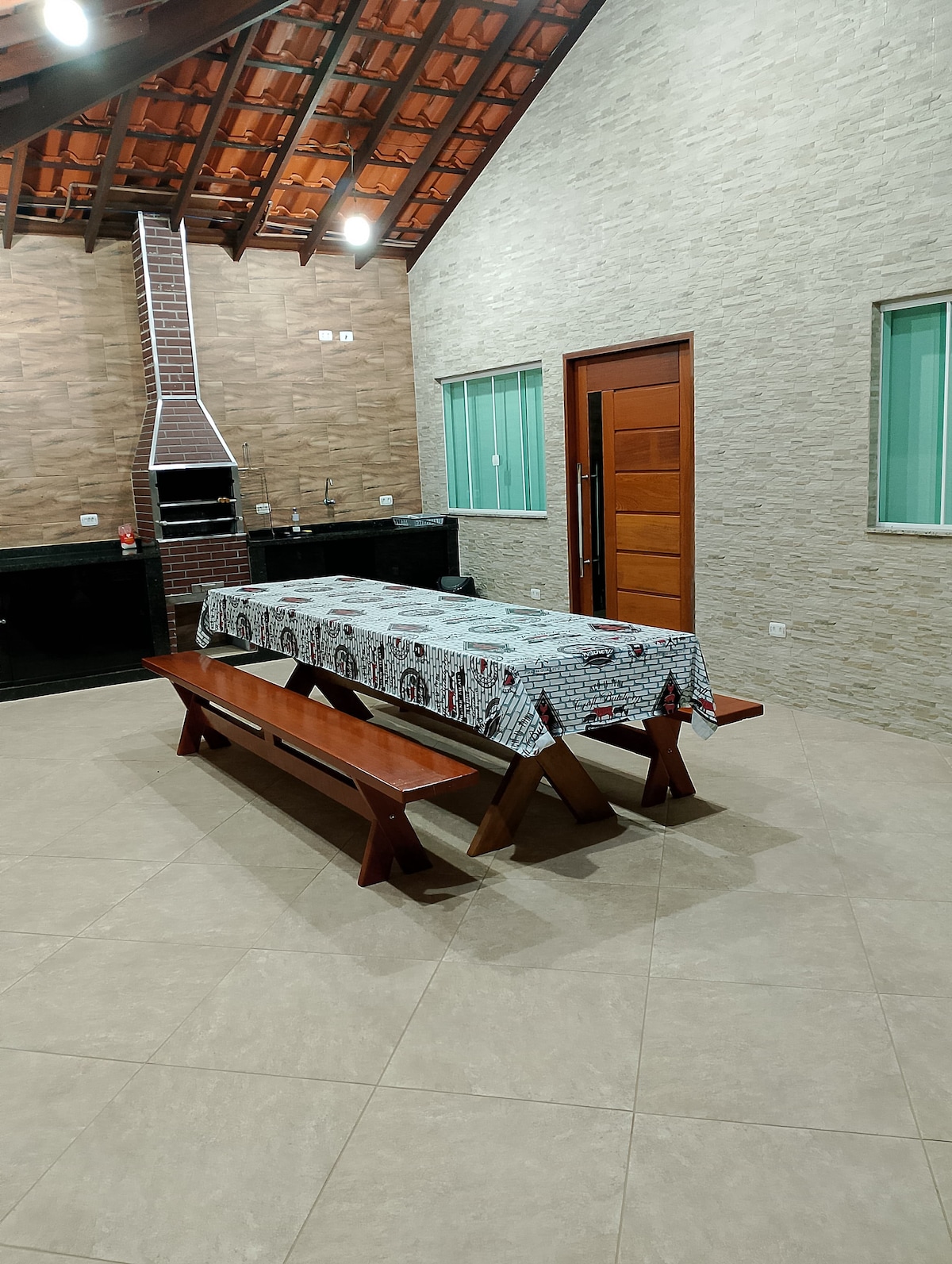 Casa con dos dormitorios dobles, uno con aire acondicionado y el otro con ventilador de techo, sala de estar y cocinas americanas con estufa, nevera, utensilios de cocina, con un baño interno y uno externo en la zona de barbacoa, garaje. Con fácil acceso a la autopista, y a 15 minutos de las playas Grande, Toninhas, Tenório, cerca de un supermercado, panadería, farmacia. NUESTRO PATIO TRASERO SOLO SE COMPARTE CON NOSOTROS, que vivimos en la casa principal, y el garaje está separado. No dejamos toallas y nos cubrimos.