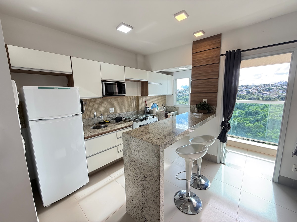 Apartamento nuevo,fino acabado,súper bien ubicado, a 10 minutos del centro, centro comercial y UFU. Solo está equipado para recibir huéspedes. Equipado con microondas,estufa, nevera, cafetera,loca y ollas. Toallas feupudas Maciase que te abrazan después de la ducha. Barrio y calles tranquilas. ¡Puedes escuchar pájaros cantando en la ventana por la mañana!Vacante para 1 auto. Aceptamos mascotas pequeñas. Para el uso de la piscina y el área de ocio, no cobramos ninguna tarifa, ¡con algunas restricciones!