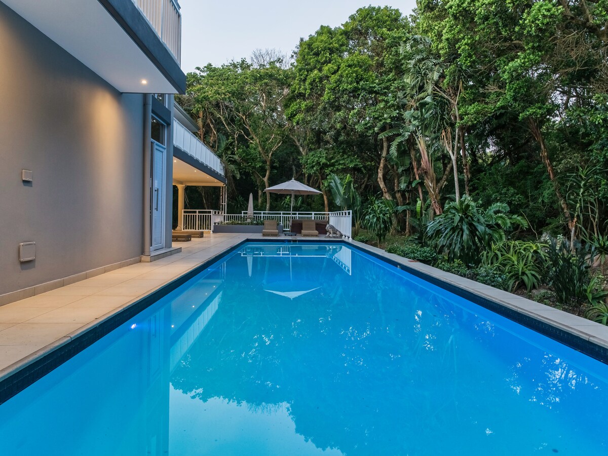 Hermosa villa de 5 dormitorios con vistas al mar. Magnífica casa de vacaciones, a pocos pasos de la playa en San Lameer Golf Estate, Kwazulu Natal. Villa privada de lujo de 5 dormitorios con 5 baños completos en suite, con impresionantes vistas al mar desde un gran patio y 4 de los dormitorios. La villa tiene una piscina y un jacuzzi. Ofrece un impresionante alojamiento en la costa sur junto con un campo de golf de 18 hoyos que hace de San Lameer Estate el alojamiento vacacional perfecto en Sudáfrica.