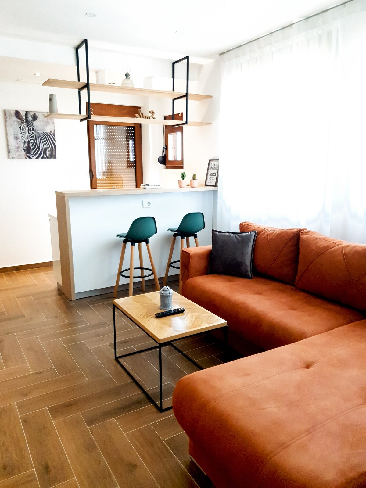 Este elegante apartamento en el segundo piso tiene más de 45 metros cuadrados, combinando comodidad y estilo. Cuenta con un dormitorio acogedor, un baño con bañera, ducha y bidé, y una amplia terraza con vistas a la bahía de Kruče con una gran mesa de comedor, perfecta para disfrutar de la vista con una refrescante copa de vino. El elegante interior muestra acabados de piedra natural y parqué e incluye comodidades modernas como TV de pantalla plana, mini caja fuerte y minibar.