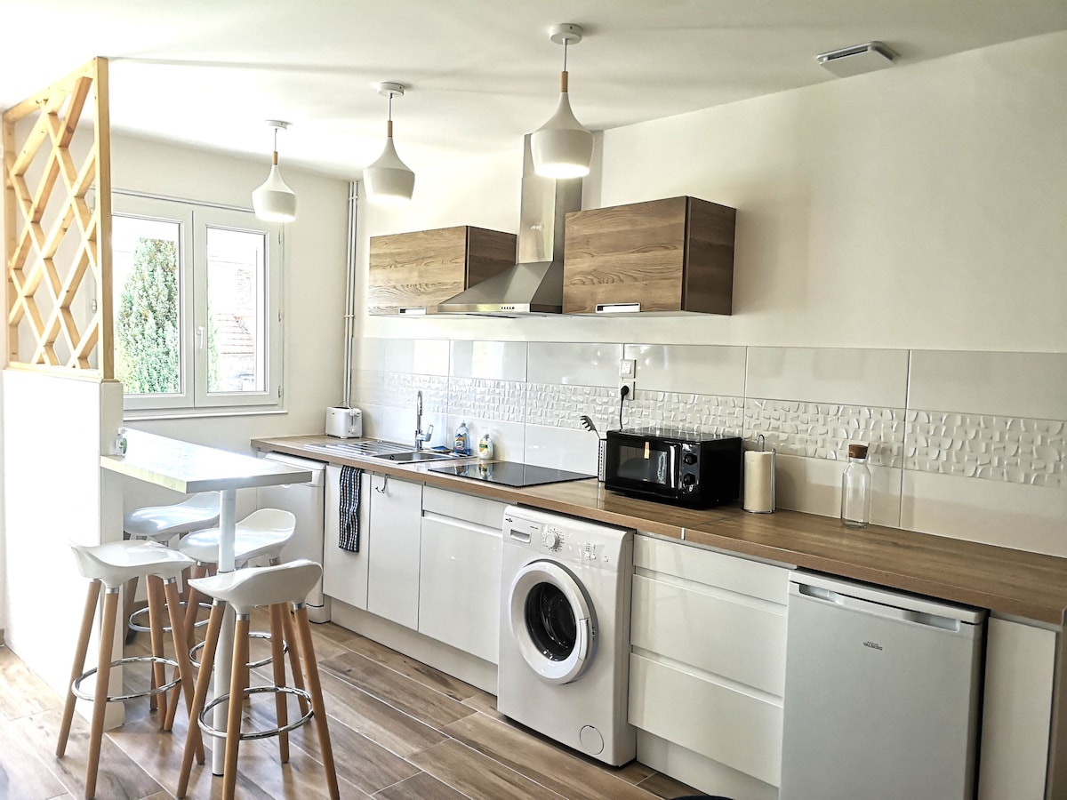 Esta casa de 51 m2 ha sido renovada en una antigua granja. Se encuentra en el pueblo de Jouy y a 3 minutos de la estación de tren en automóvil, lo que la convierte en un lugar ideal para visitar Chartres y su valle del Eure o simplemente disfrutar de todas las comodidades durante un viaje de negocios. La decoración interior es moderna pero sabe cómo olvidarse, la casa ha sido pensada para ser funcional Podrá ponerse en contacto durante toda su estancia en caso de preguntas.