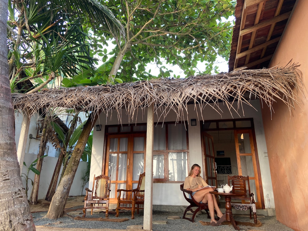 Private self contained 1 bedroom,en-suite bathroom cottage in the garden of our home,access to swimming pool,hammock and a private outside area. Must be dog lovers,we have 2 dogs. We are LGBTQIA+ friendly. The property is in a quiet local village,surrounded by paddy fields and peacocks. The wildlife watching is excellent. Very quiet in the evenings, see how the real Sri Lankans live. Kick back and relax in this calm,stylish space.