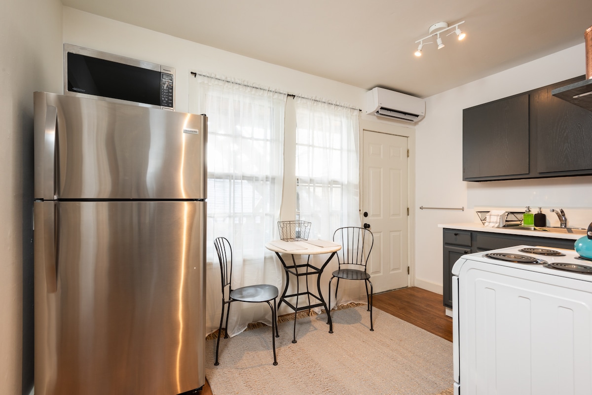 Deleita tus ojos con el magnífico comedor y luego prepárate para disfrutar de un festín porque la cocina está totalmente equipada para todo, desde cócteles hasta el plato principal. O simplemente disfruta de los dramáticos toques de color y la decoración sexy esparcidos por todo el espacio. Relájate después de un largo día de antigüedades o explorando en una acogedora sección al aire libre en el jardín del patio trasero.