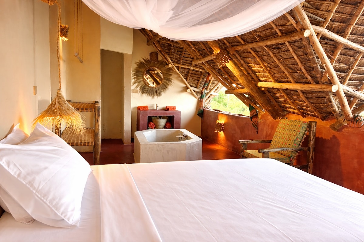 Step into your own private paradise with this stunning one-bedroom villa, located on the beach, just steps from the ocean. Wake up to the sound of waves and feel the sand beneath your feet within moments of leaving your door. Blending traditional African elegance with modern comfort, this villa is uniquely decorated with handcrafted cultural woods and natural materials that reflect the beauty and heritage of the region.