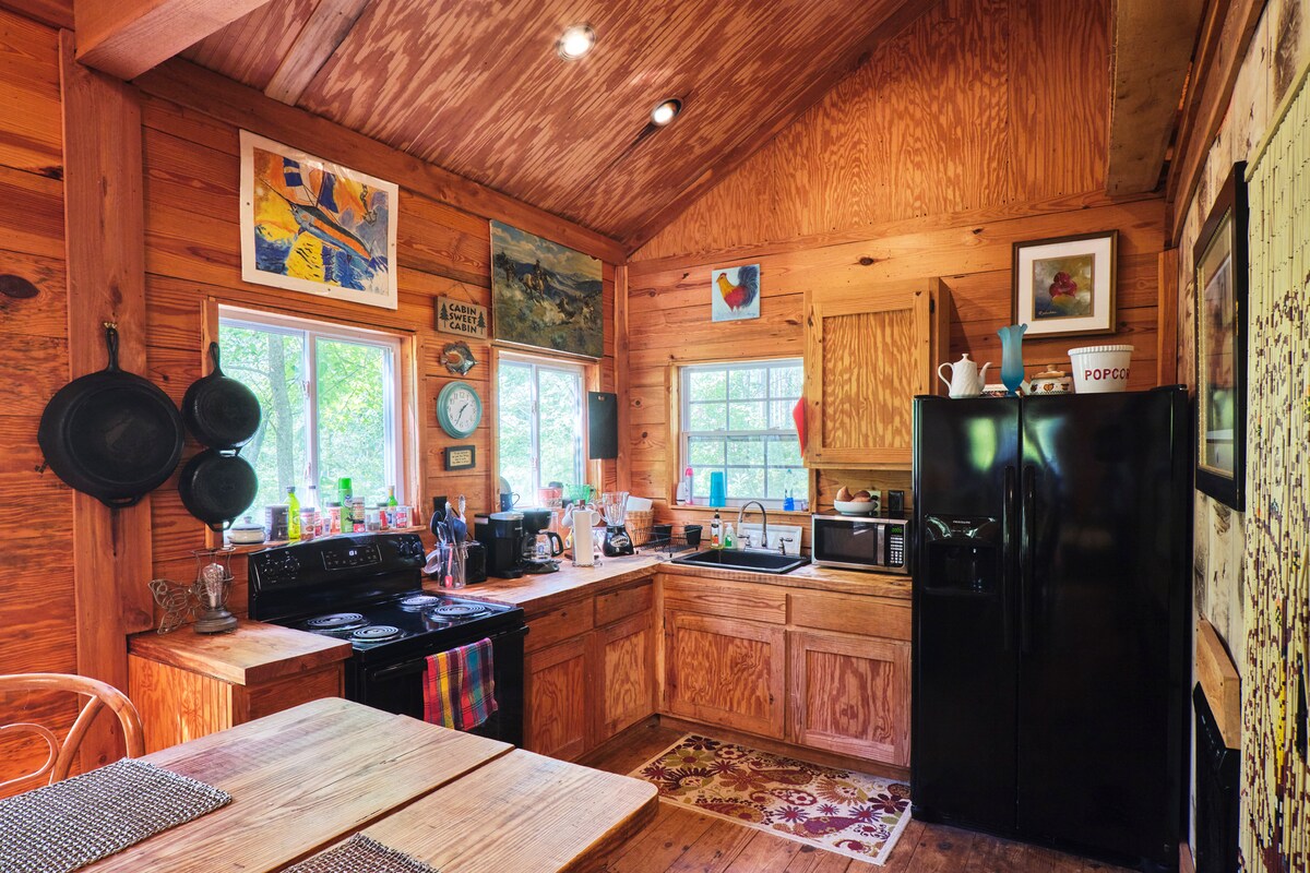 La cabaña es un destino en sí misma. Pesca desde el muelle o las orillas del lago de ocho acres de gestión privada. Hay un bote de John que es bastante viejo, utiliza remos y está en buena forma (no dudes en traer tu canoa o bote de John). Hay un bote de remos y una tabla de remos a disposición de los huéspedes para nadar. Disfruta paseando por la propiedad y visita la casa del aro y el huerto para obtener frutas y verduras de temporada gratuitas. ¡Diviértete junto a la chimenea exterior asando nubes de azúcar con amigos y familiares!