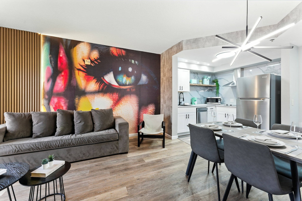 Condominio moderno de 2 habitaciones que admite mascotas, a 6 minutos de Disney