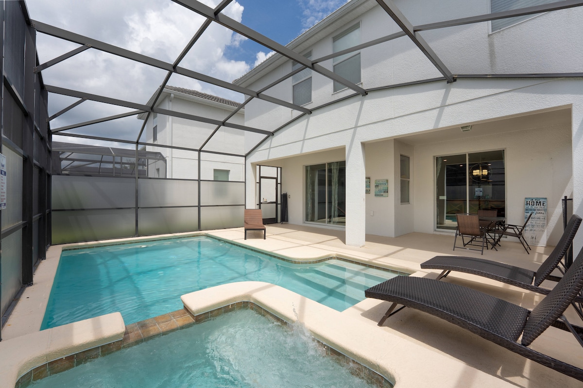 Increíble casa de lujo moderna a estrenar en Encore Resort Reunion. SE ADMITEN MASCOTAS y minutos de todos los parques temáticos. NUEVO HOGAR. Piscina privada y spa / sala de juegos / cine / gimnasio / sillón de masaje / chimenea / PS5 / juegos de mesa y mucho más. Abraza lo extraordinario y reserva tu estadía en nuestro alojamiento, donde el lujo y el entretenimiento se unen para una experiencia de vacaciones inolvidable. ** Consulta las reglas antes de reservar. El acceso al parque acuático no está incluido. **