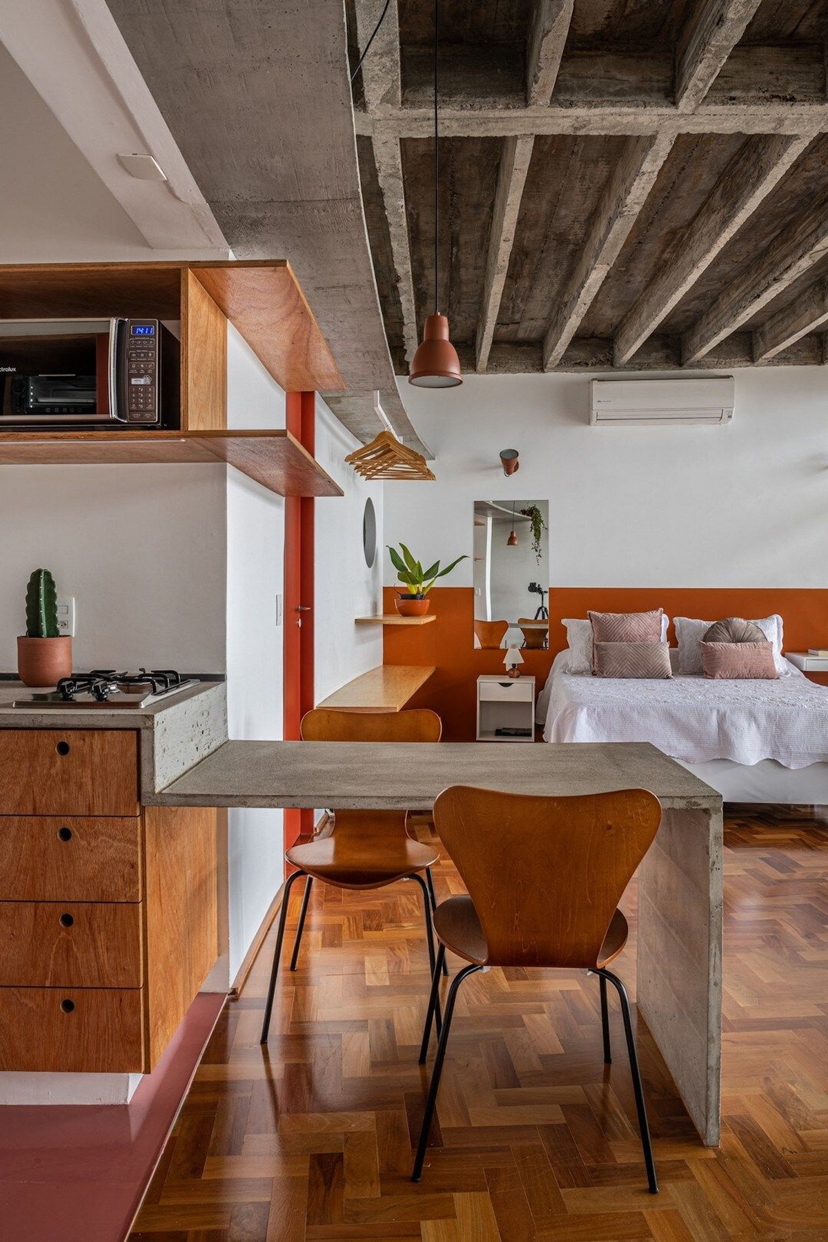 Alójese en el piso 30 del Edificio Copan con una de las vistas más espectaculares del atardecer. Este estudio totalmente equipado tiene todo lo necesario para una estancia inolvidable en el edificio residencial más famoso de Brasil. Ubicado sobre una de las obras maestras del arquitecto Oscar Niemeyer, este apartamento fue completamente remodelado en un proyecto de la arquitecta Teresa Mascaro y ahora también forma parte del proyecto AirBnB en Copan.