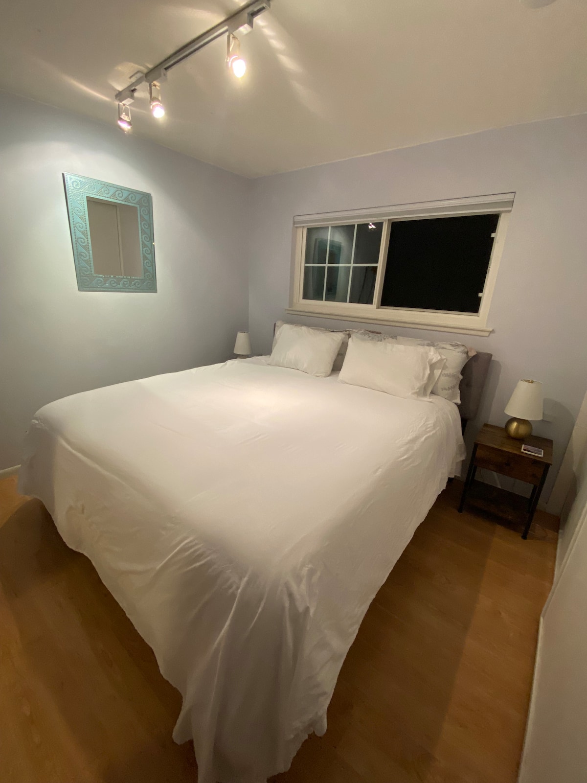 Habitación recién remodelada (con cama tamaño king), baño adjunto, patio con entrada privada y llegada autónoma. Al otro lado de la calle hay una reserva natural con un sendero para caminar de 1,5 millas que ofrece observación de aves, el lago Los Carneros y la histórica Stow House. La casa es de 2 pisos con 3 dormitorios y 2 baños por encima de la unidad. Las habitaciones de arriba tienen alfombras y aislamos el techo de arriba para intentar mitigar el ruido, pero los pisos de 60 años pueden chirriar.