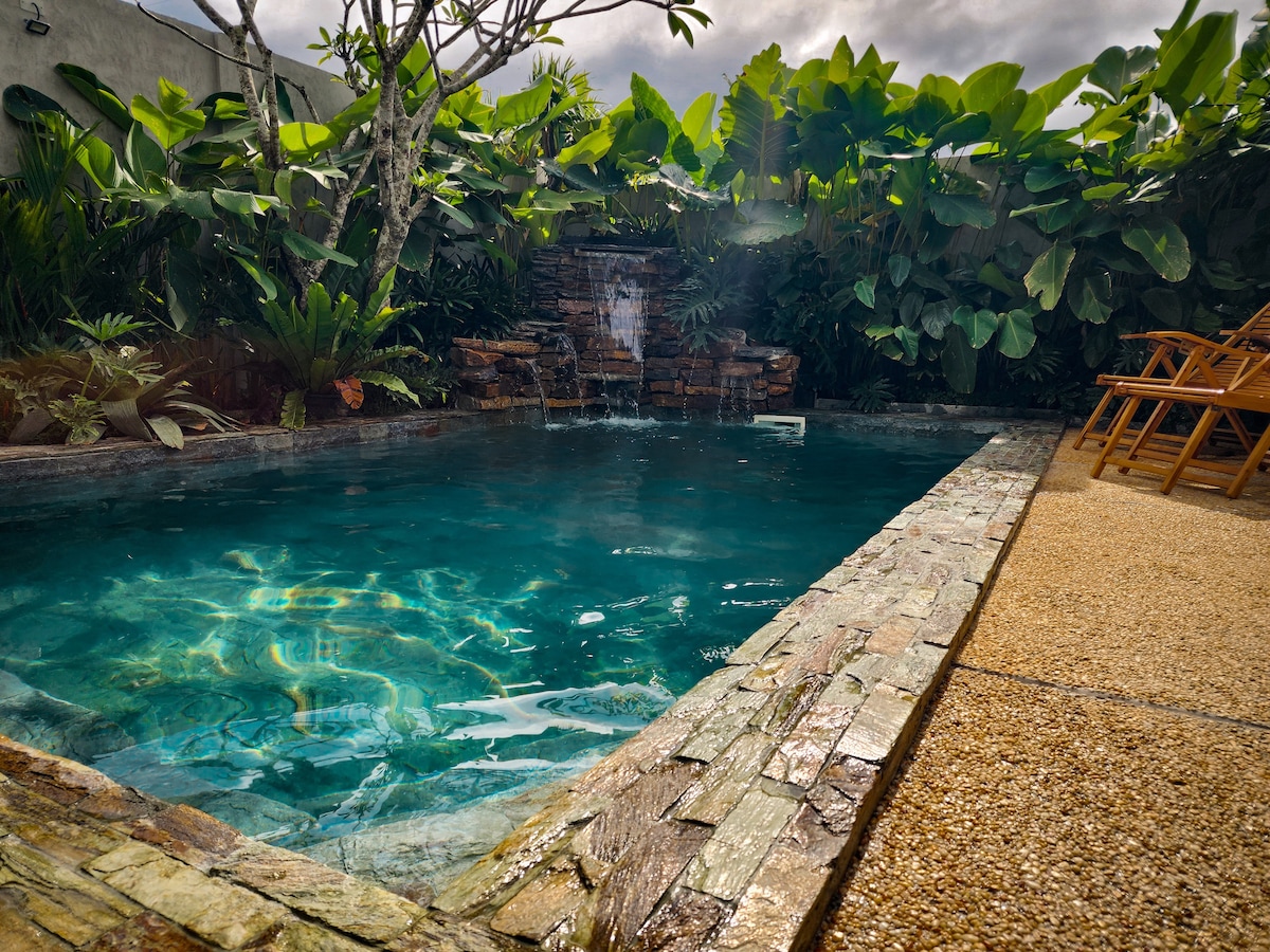 Escápate y rodéate de naturaleza exuberante, aguas termales naturales y vistas panorámicas a las montañas. Perfecto para parejas que buscan una estancia íntima. Esta escapada privada cuenta con un diseño de loft abierto con una cama tamaño king con vistas a las montañas, un sofá hundido envolvente con vistas a la piscina y al jardín, una cocina completa, dos baños completos y una cascada que fluye con agua de manantiales termales naturales.
